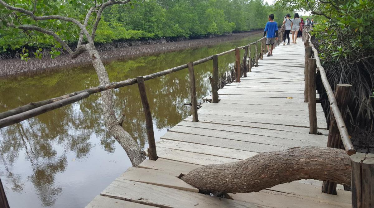 قبل أن تصل إلى نقطة النهاية للجسر الخشبي الذي يمتد لمسافة 500 متر تقريبًا ، هناك نقطة انعطاف يمين تؤدي إلى غابة المنغروف. عند هذا المنعطف توجد بقع استراحة وبقع صور على الصخور مثيرة للاهتمام.